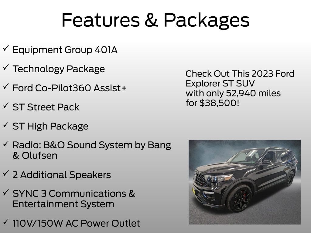 Don't miss your chance to experience the unparalleled blend of power, technology, and style that this 2023 Ford Explorer ST has to offer. Schedule a test drive today and discover the thrill of driving this exceptional SUV.